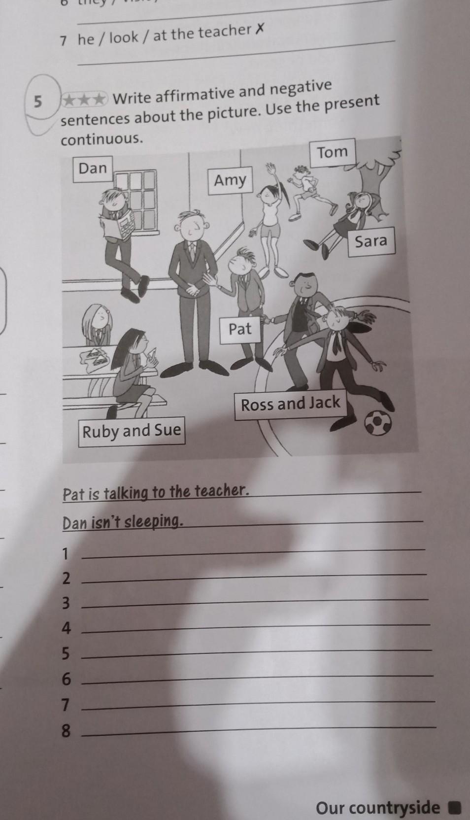 5.Write affirmative and negative sentences about the picture.Use the present continuous.пж срочно