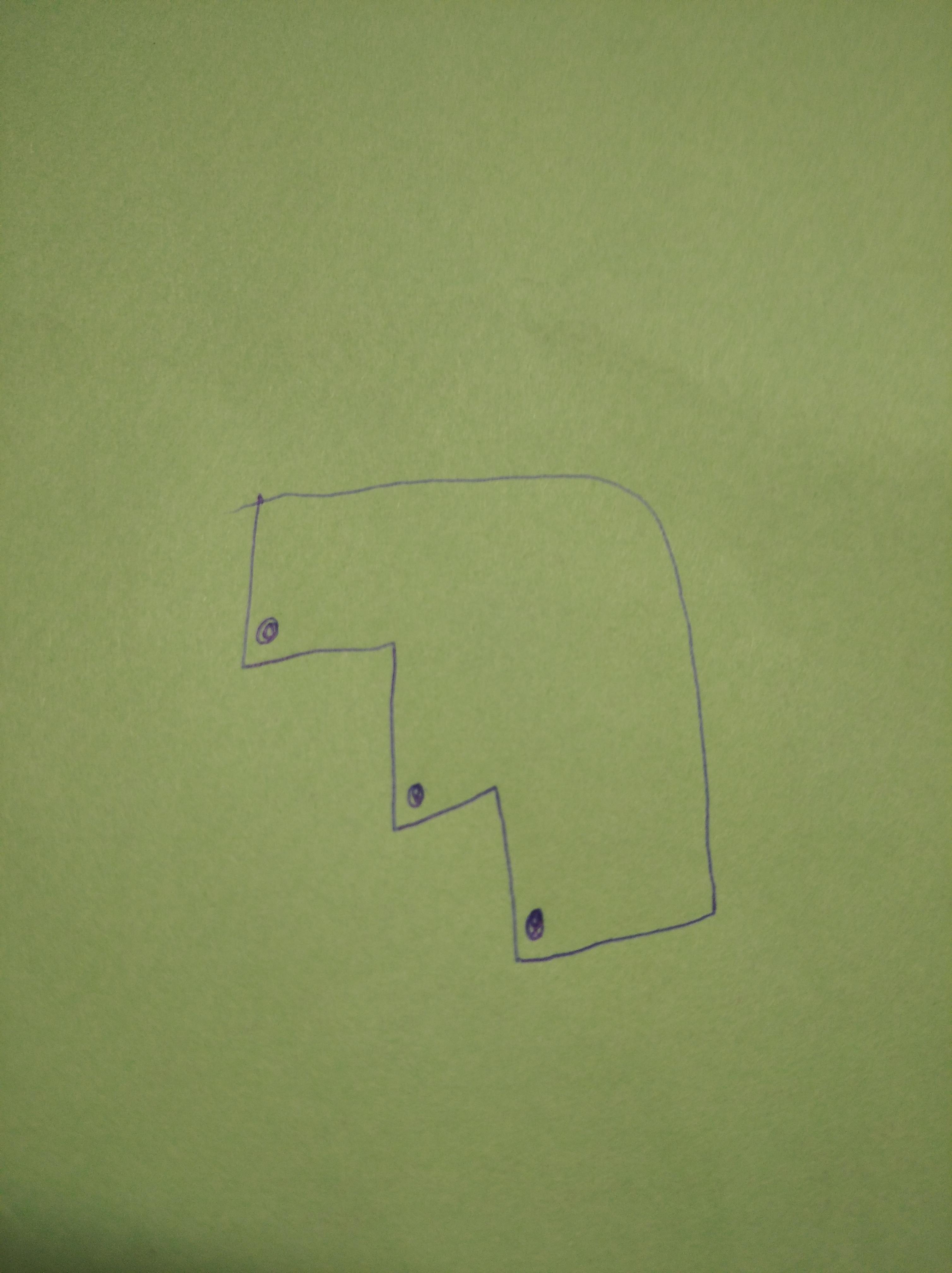 В освещённой комнате без мебели соседние стены соединяются под прямым углом (но стен может быть много, они могут быть разной длины, ...). Трое друзей встали в ней так, что не видят друг друга, как ни вертись. Могло ли так быть? (Если могло — нарисуйте пример комнаты и отметьте точками, где стоят трое друзей; если не могло — напишите доказательство.)