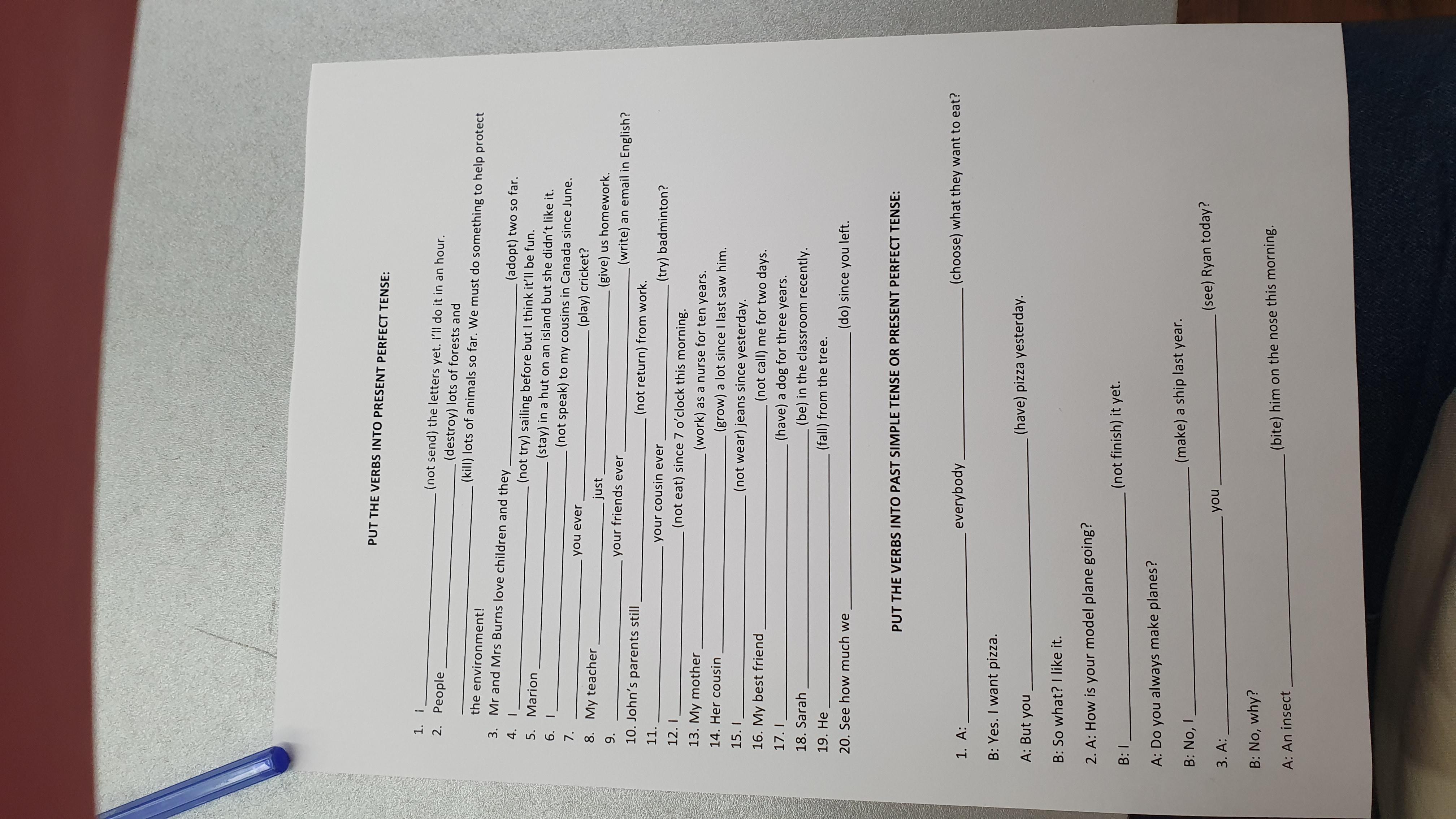 Put the verbs into present perfect tense