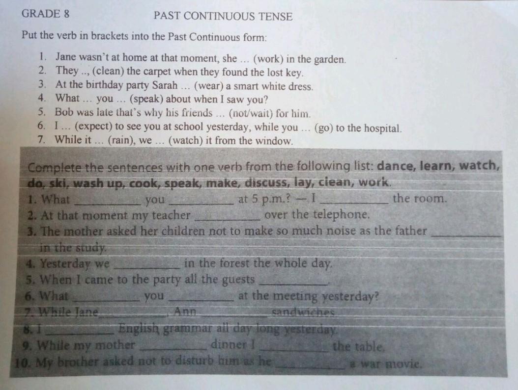 Відповідь: working,cleans, wear, did speaked, didn't wait, expected went, rain watching.