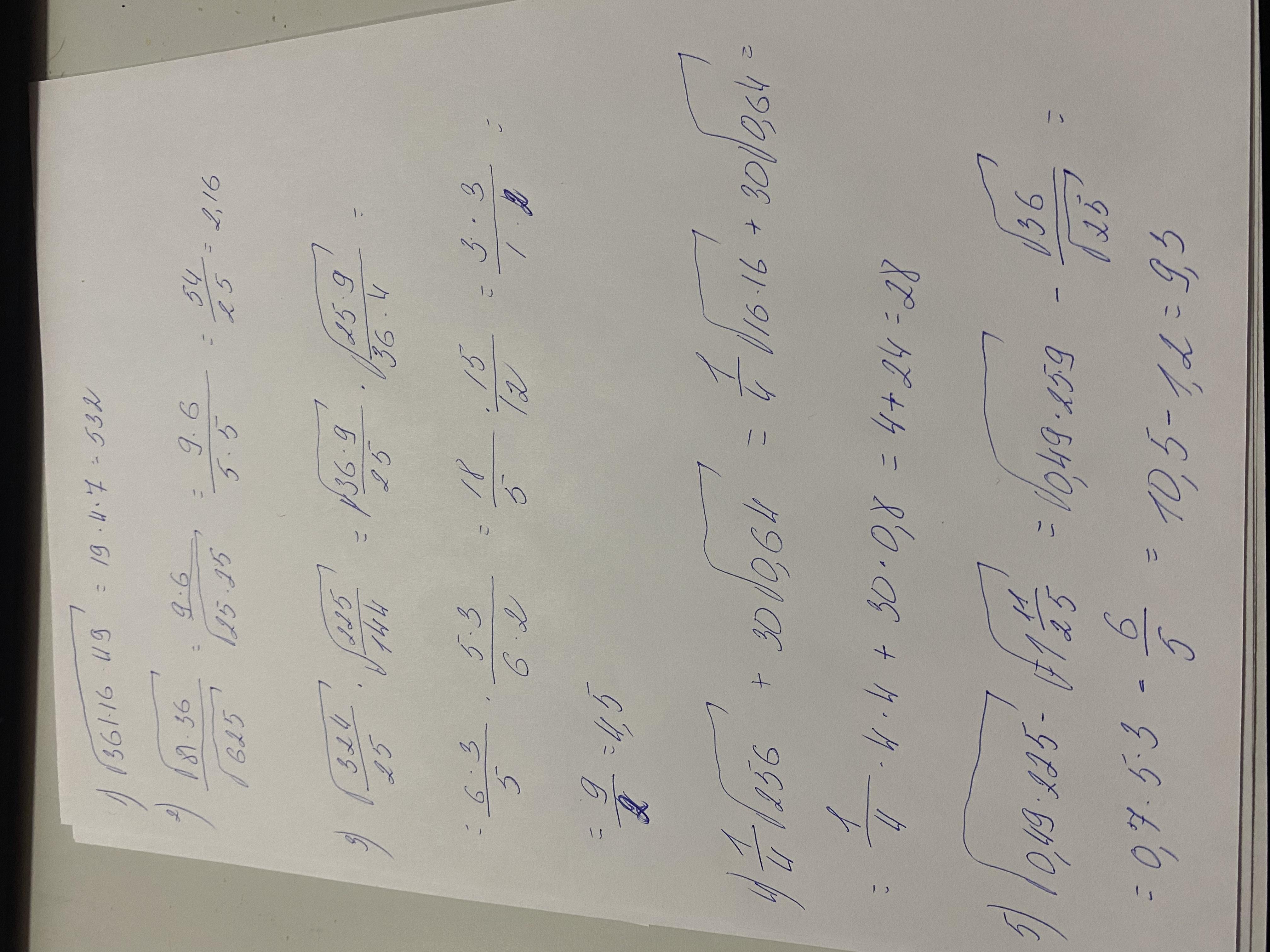 2)√2916/ √625= 54/25