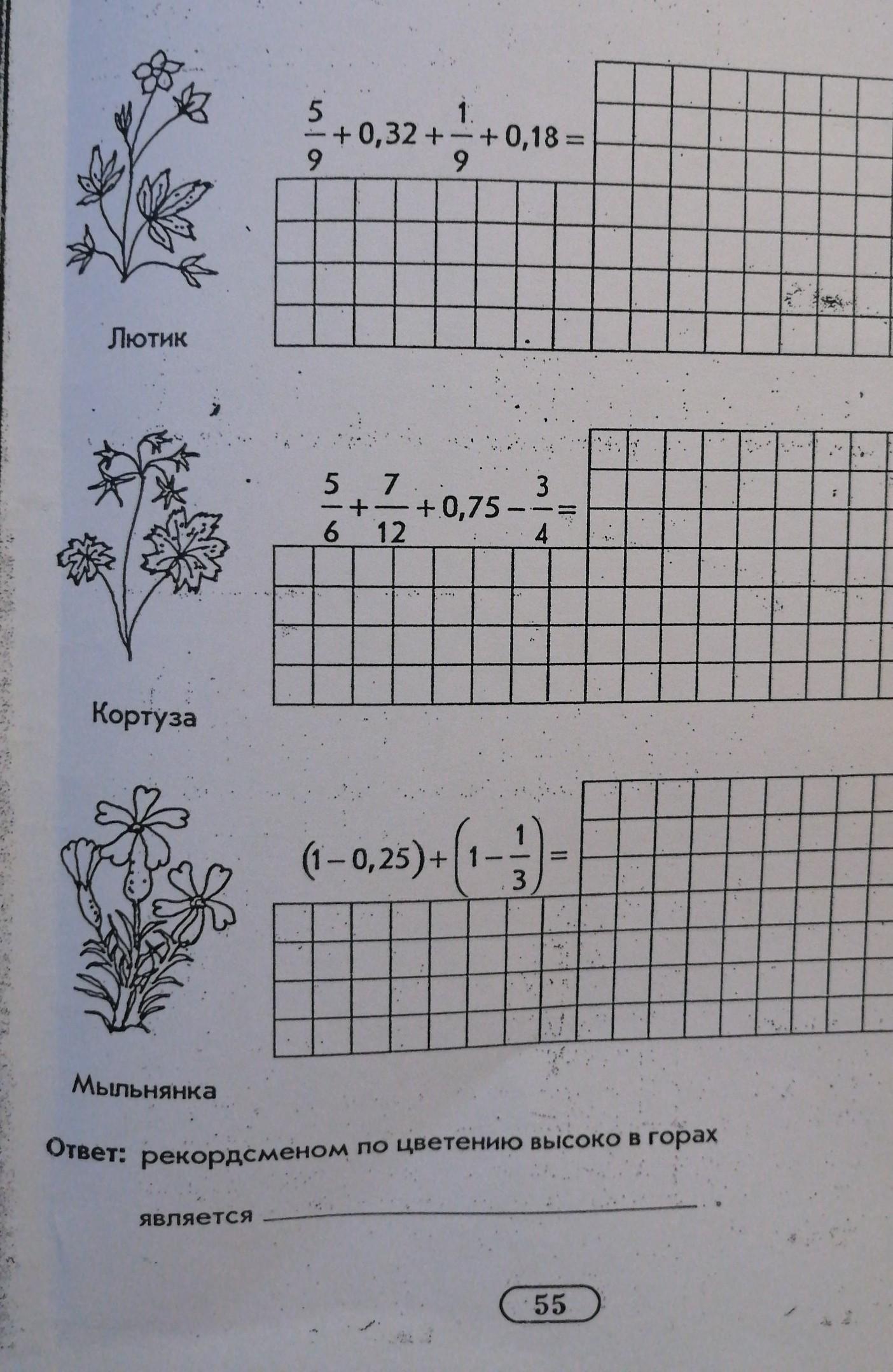 Найдите значения выражений. Если вычисления будут сделаны верно, то два ответа совпадут. С оставшимся примером и ответом связано название цветка-рекордсмена.