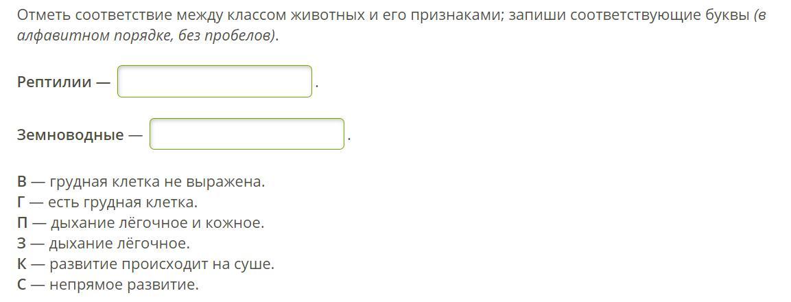 Рептилии: Есть грудная клетка,дыхание лёгочное,развитие происходит на суше.