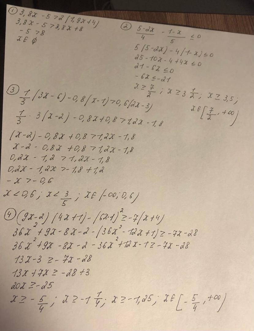 b) 1/3(3x-6)-0,8(x-1)>0,6(2x-3)