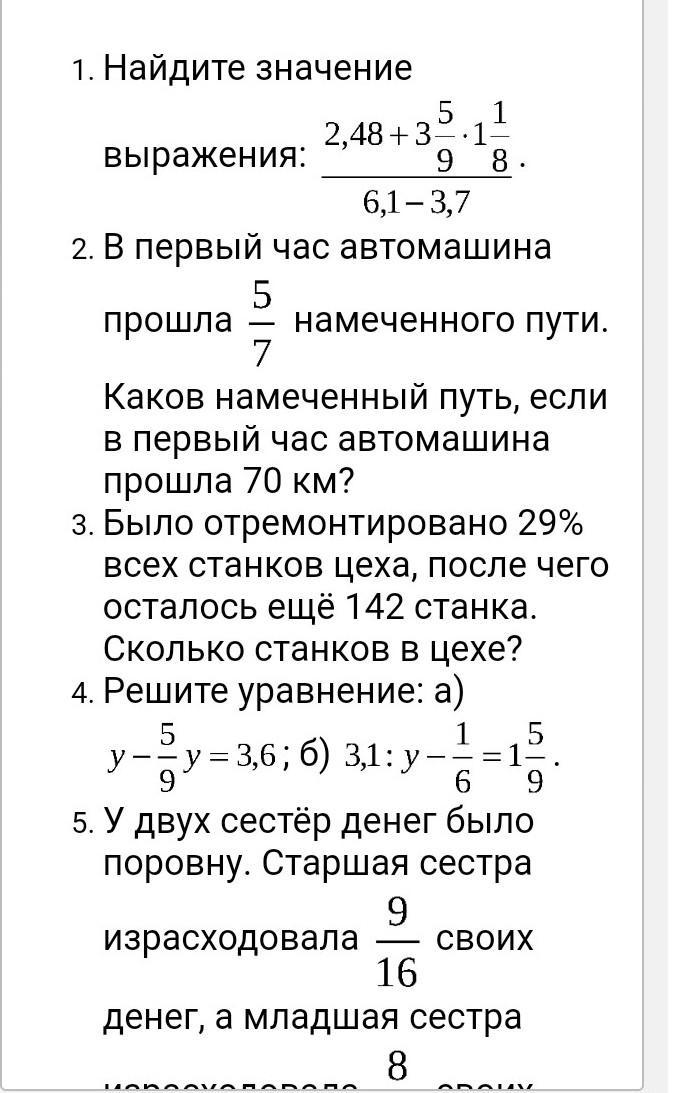 1) (2, 48 + 3 5/9 * 1 1/8)/ 6,1- 3,7=( 2,48 + 32/9 * 9/8)/2,4= 2,48 + 4)/2,4= 6,48/2,4= 2,7