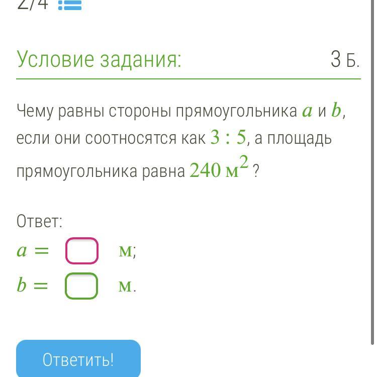 Пусть а=3х м, а b=5x м. Тогда площадь