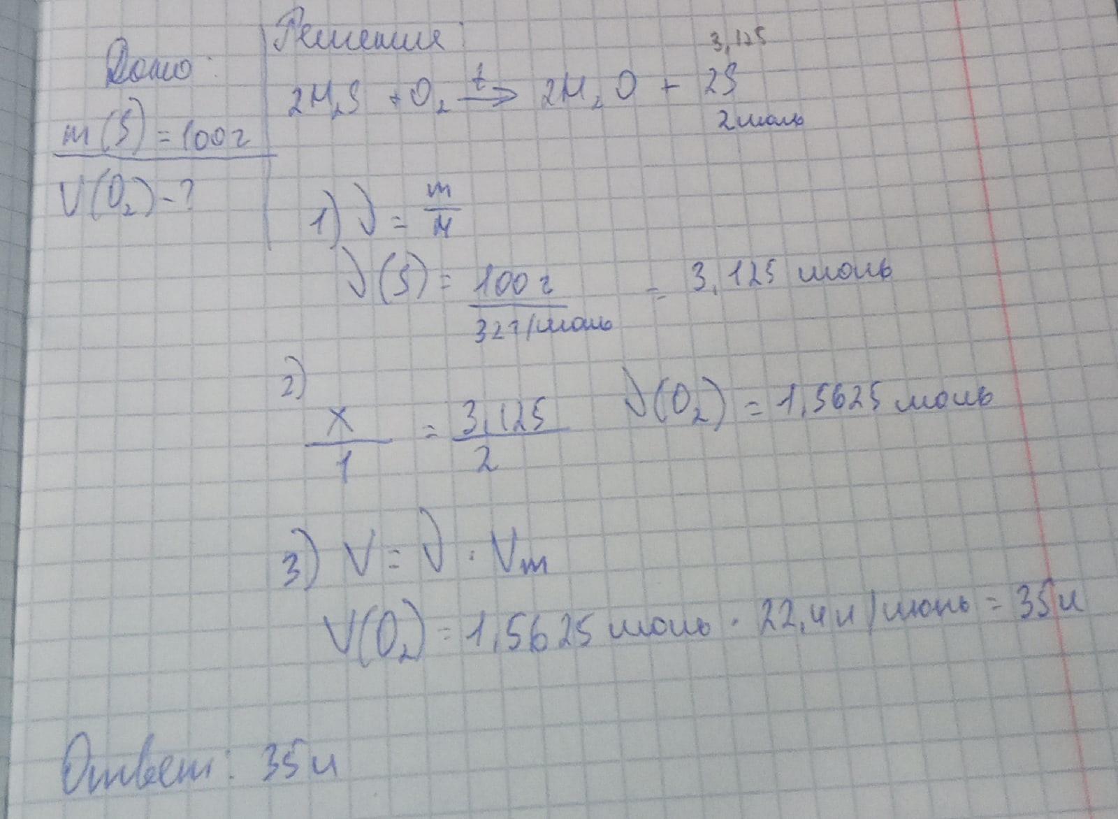 Какой объем кислорода необходим для получения 100 г серы из сероводорода?