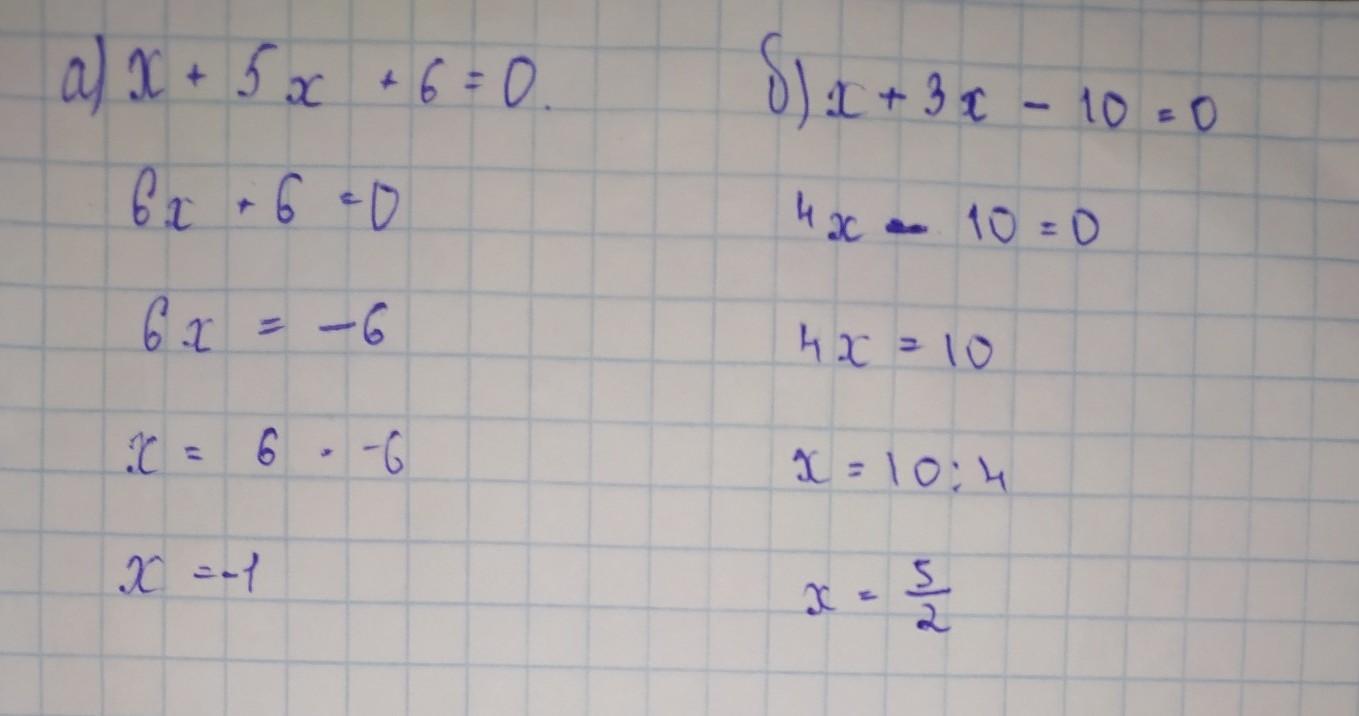 Решите уравнения по т.Виета а) х + 5х + 6 = 0 б) х + 3х – 10 = 0