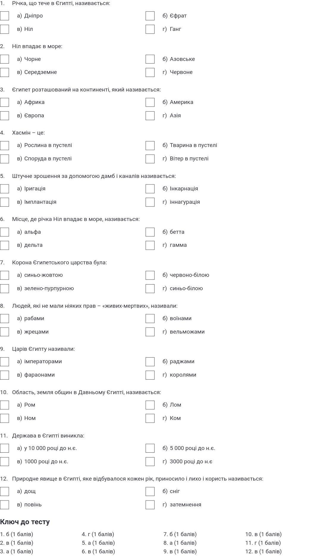 Сверху вопросы, снизу ответы. в ответах про буквы те что сверху говорится а не в самом твоём тесте