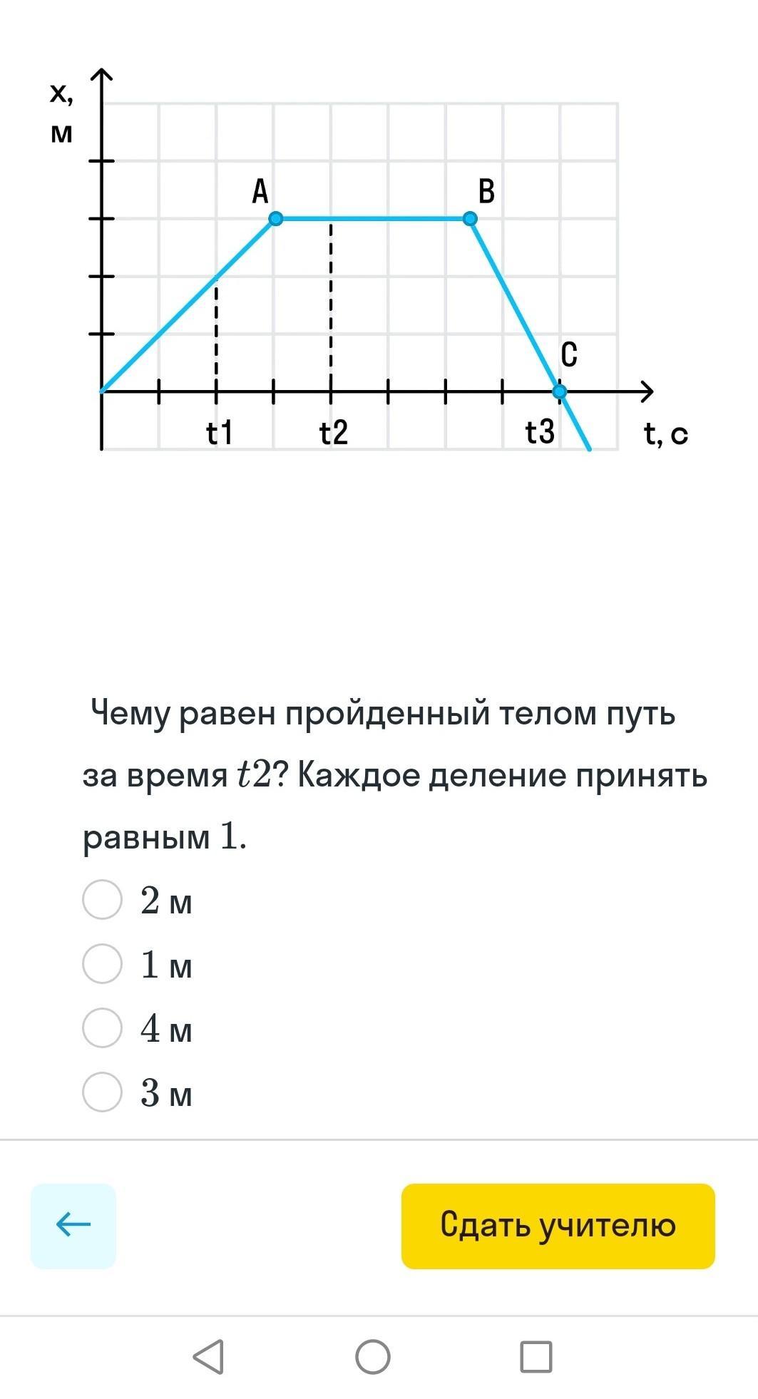 3 метра. если мы посмотрим на точку t2 и от неё пойдём к графику, увидим, что расстояние равно 3 метрам.