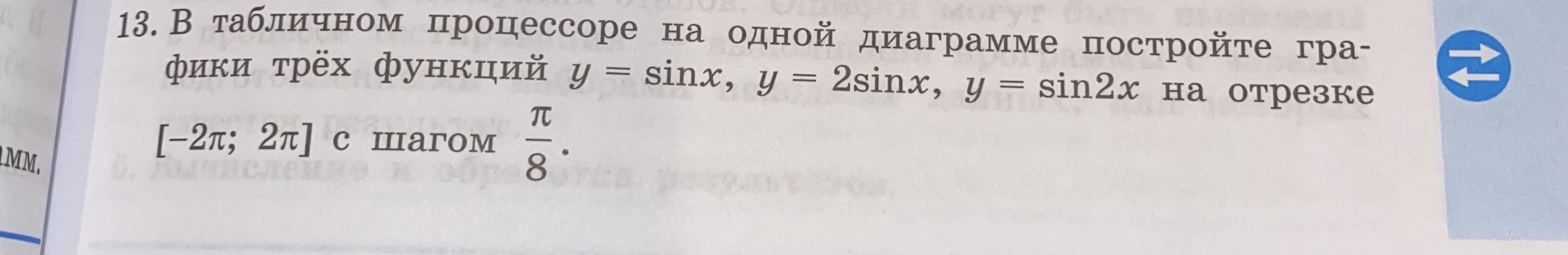 1. Построить таблицы значений функций (формулы, которые нужно ввести, смотрите на фото). Для этого вводите заголовки и под ними формулы для вычисления x и значений тригонометрических функций.
