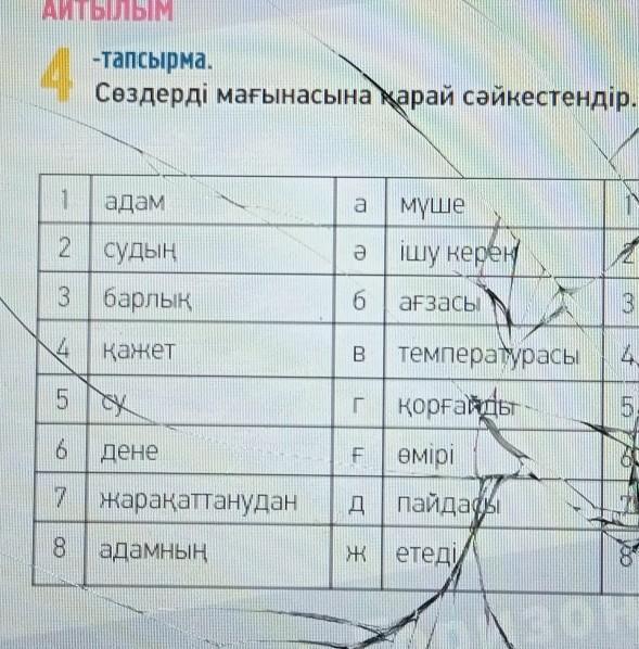4 -тапсырма. Сөздерді мағынасына қарай сәйкестендір. Сөйлем құра