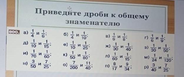 Просто ищеш у каждого примера число которое делится на два этих нижних чисел
