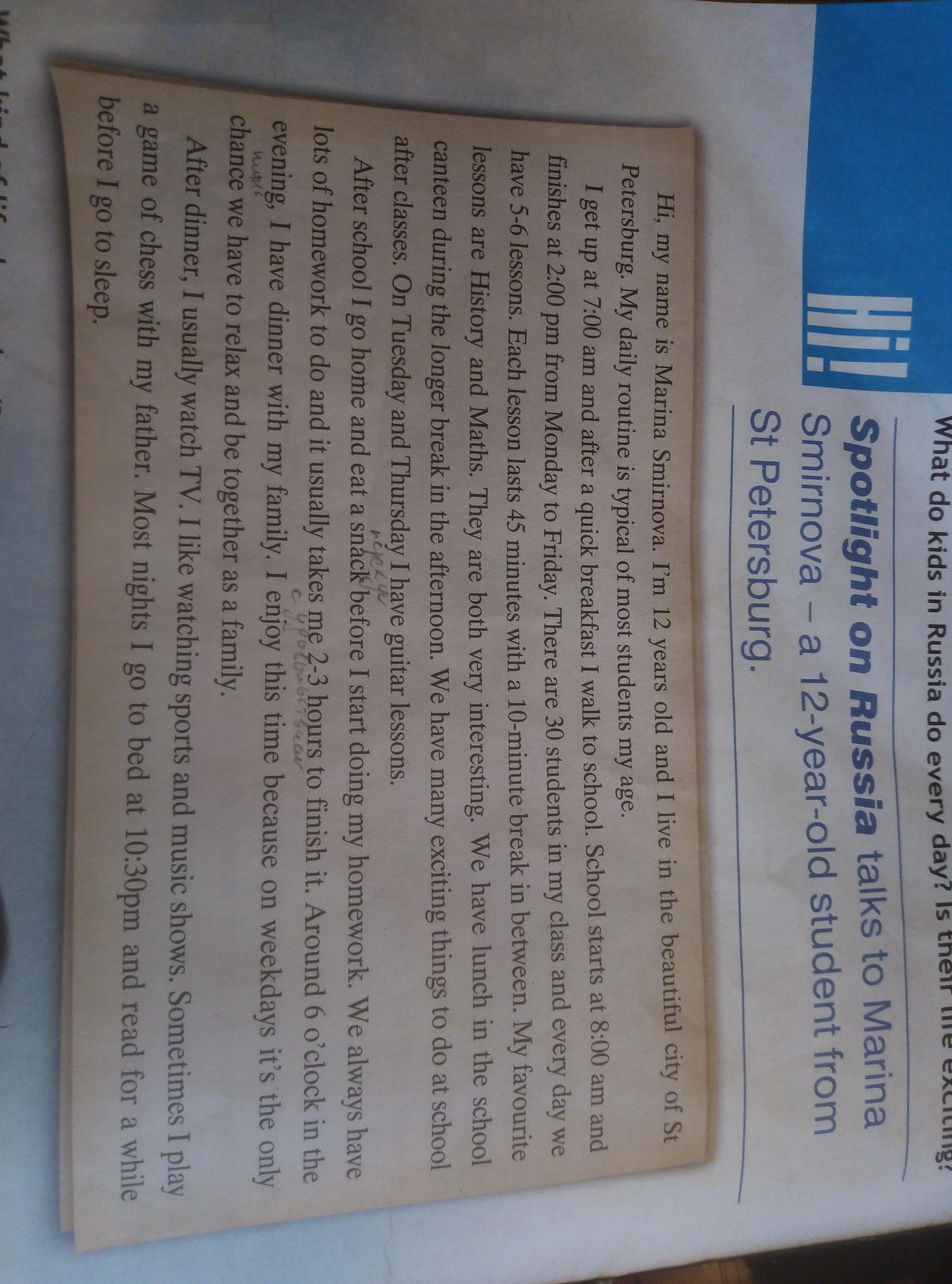 What time does Marina's school start?