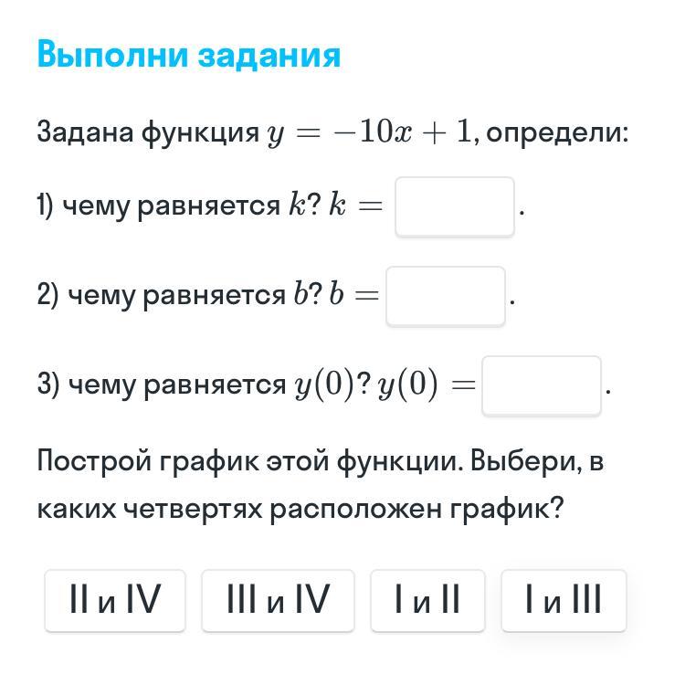 задана функция y=-10x+1,определи