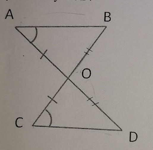Дано: сторона АО=ОС, угол А равен углу С. Докажите, что треугольник АОВ равен треугольнику COD.