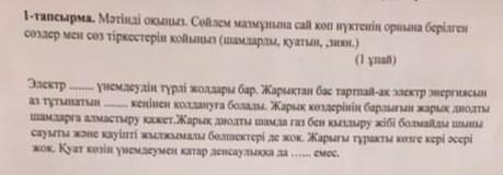 Мәтінді оқыңыз.Сөйлем мазмұнына сай көп нуктенің орнына берілген сөздер мен сөз тіркестерін қойныз (шамдарды,қуатын, зиян)