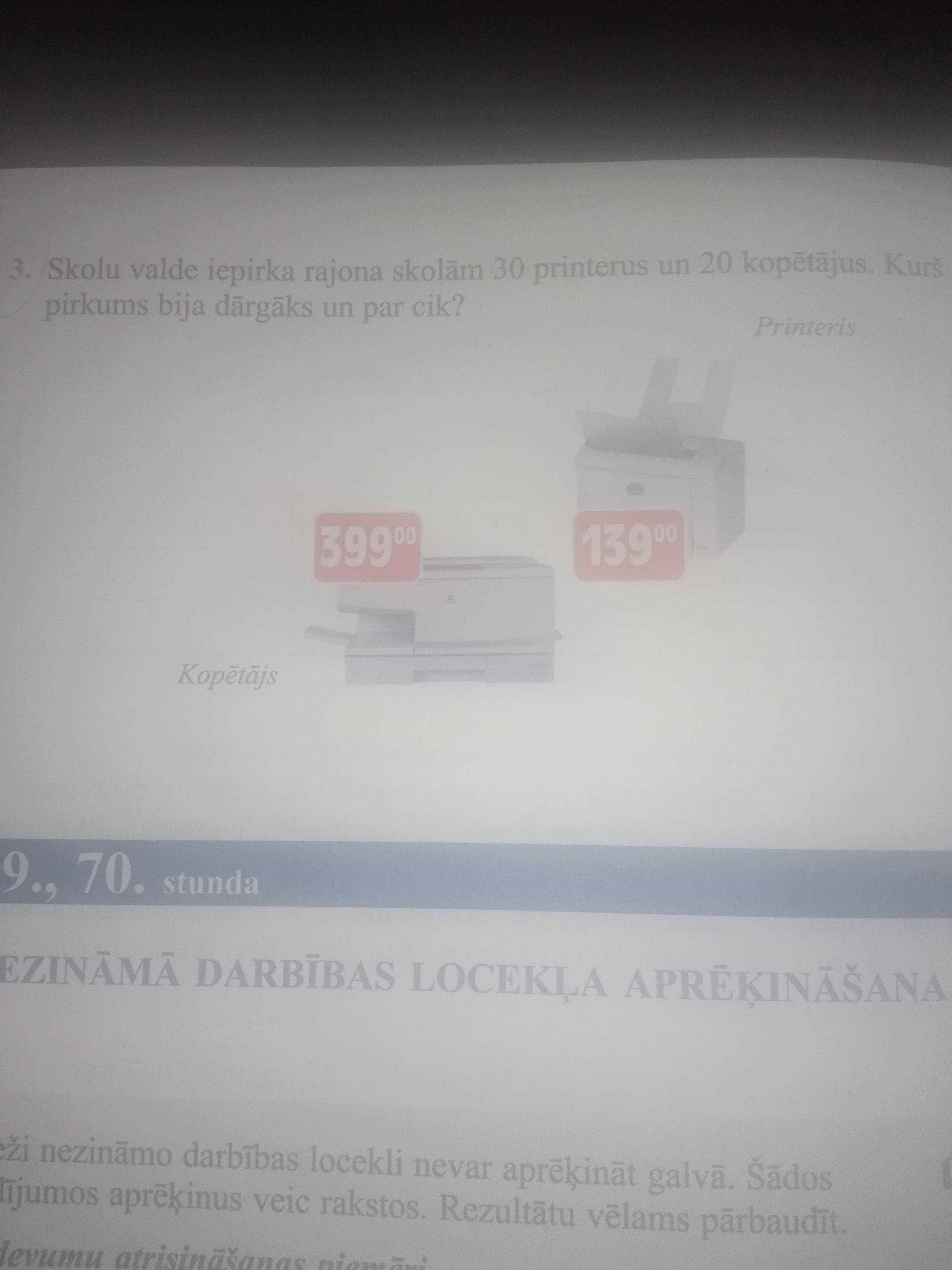 Школьный совет закупил для районной школы 30 принтеров и 20 копировальных машин. Какая покупка была дороже и на сколько?