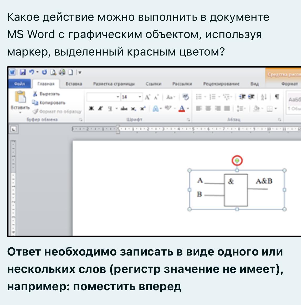 Какое действие можно выполнить в документе MS Word с графическим объектом, используя маркер, выделенный красным цветом?