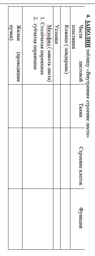 4. ЗАПОЛНИ таблицу «Внутреннее строение листа» СРОЧНО!!!