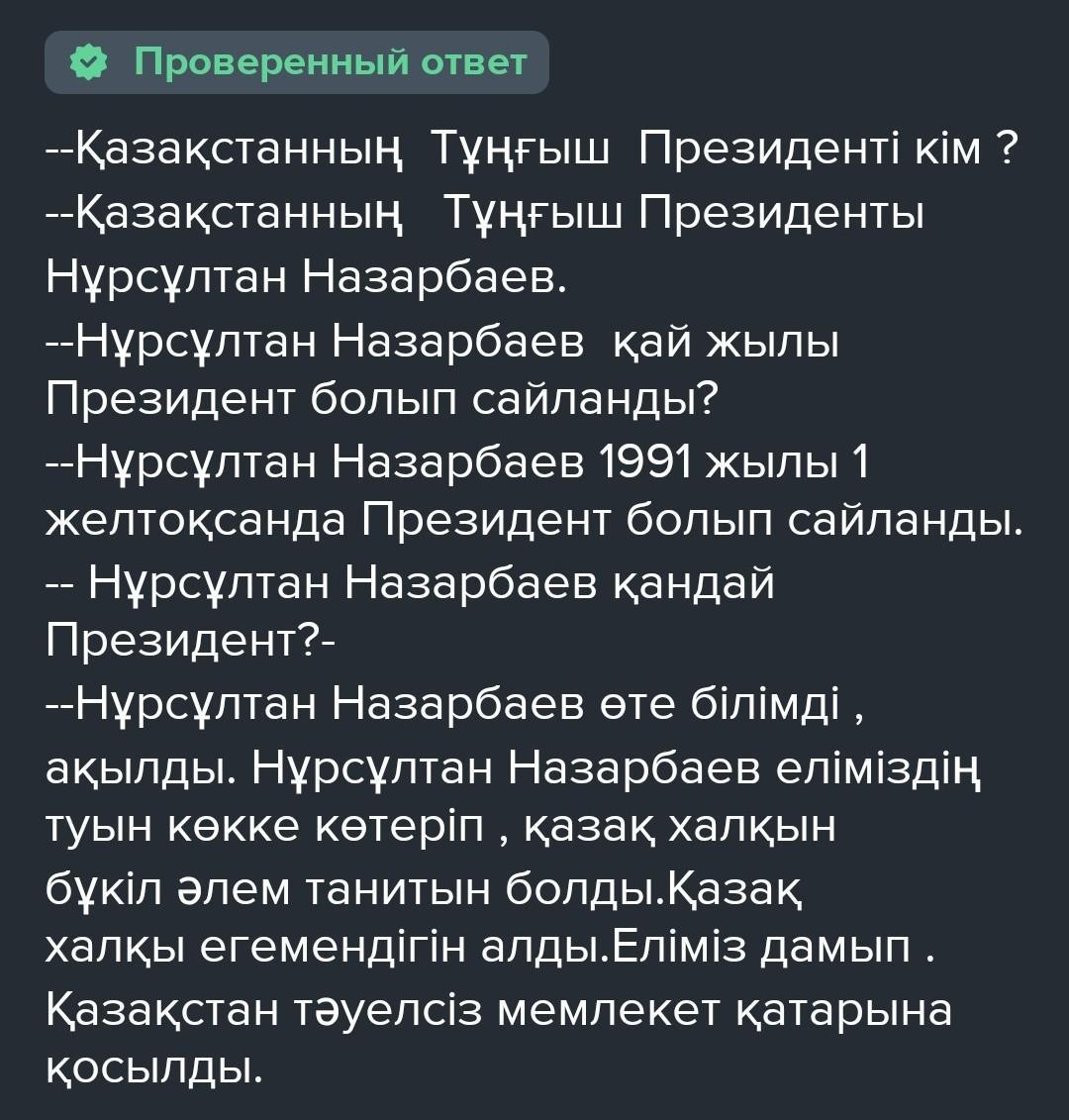 диалог на тему тұңғыш президенті