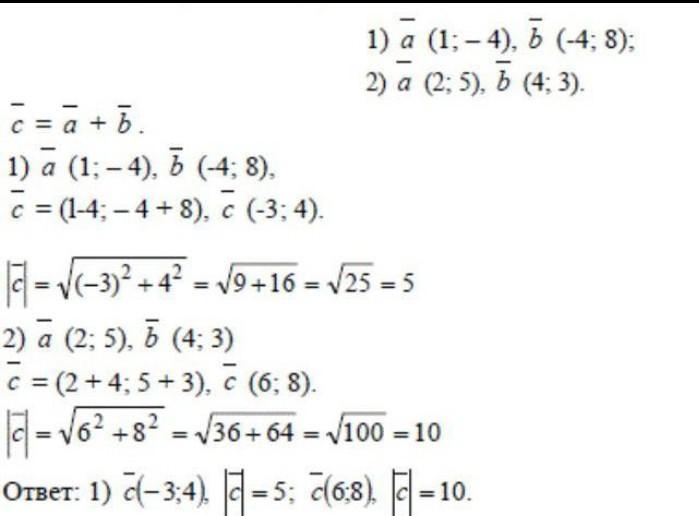 При разности векторов а(-4:10) и в(4,4) находим абсолютную величину вектора С.