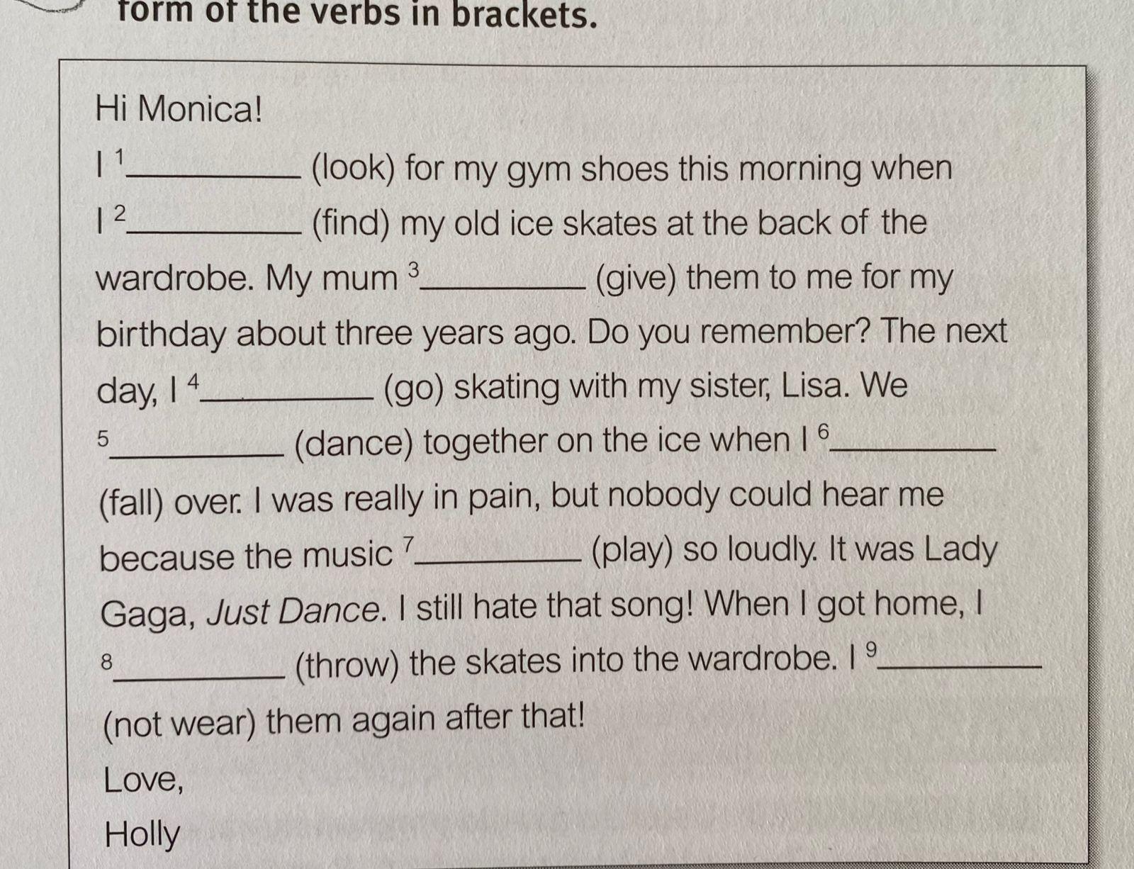 looked, found, gave, went, danced, fell, played, threw, didn't wear