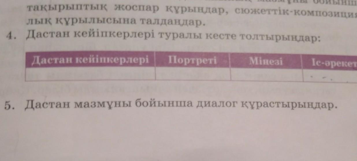 5. Дастан мазмұны бойынша диалог құрастырыңдар.