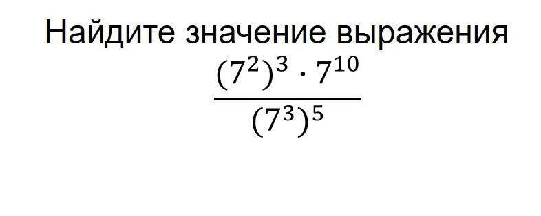 (7²)³*7¹⁰/(7³)⁵= 7⁶*7¹⁰/7¹⁵=7¹⁶/7¹⁵=7