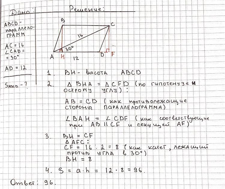 6. Площадь параллелограмма находим по формуле: S = a•h: