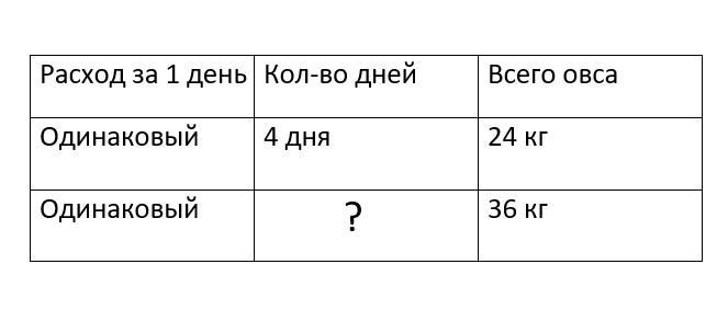 Расход овса за 1 день Количество дней Всего овса