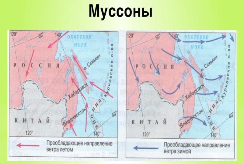 Опредилите тип климата и район: "Зимний муссон приносит с остывшего материка сухую, очень морозную, без оттепелей погоду, Лето нежаркое, нередки ливни, небо затянуто облаками. Влажность высокая"