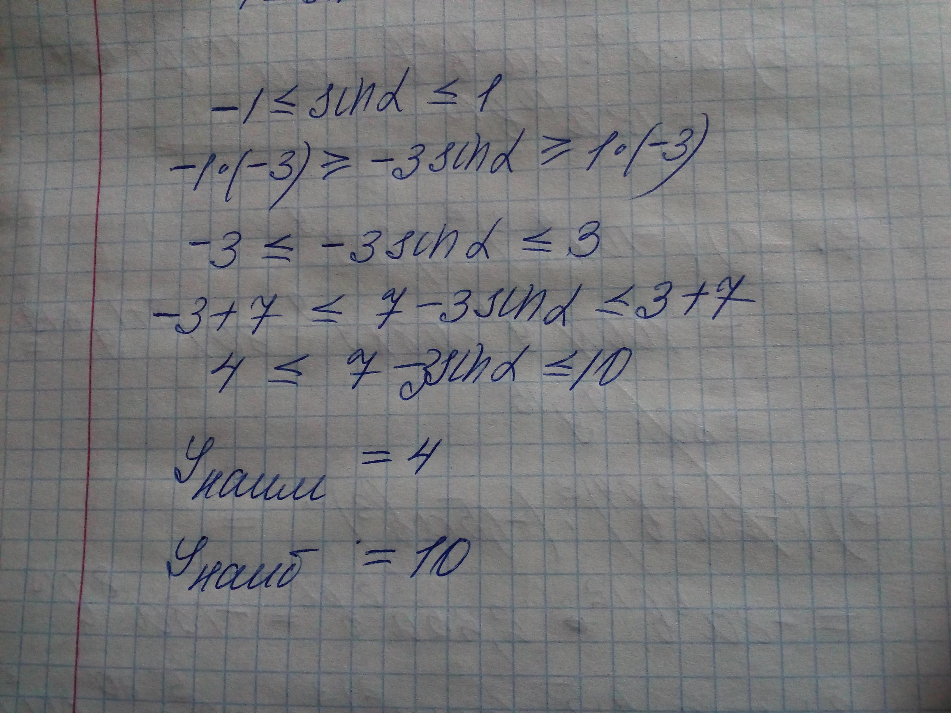 найдите наибольшее и наименьшее значение выражения 7-3sina