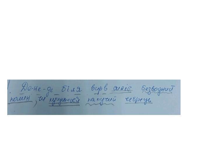 Виконайте синтаксичний розбір речення. де біля вирв синіє безводний полин чи кущиться пахучий чебрець