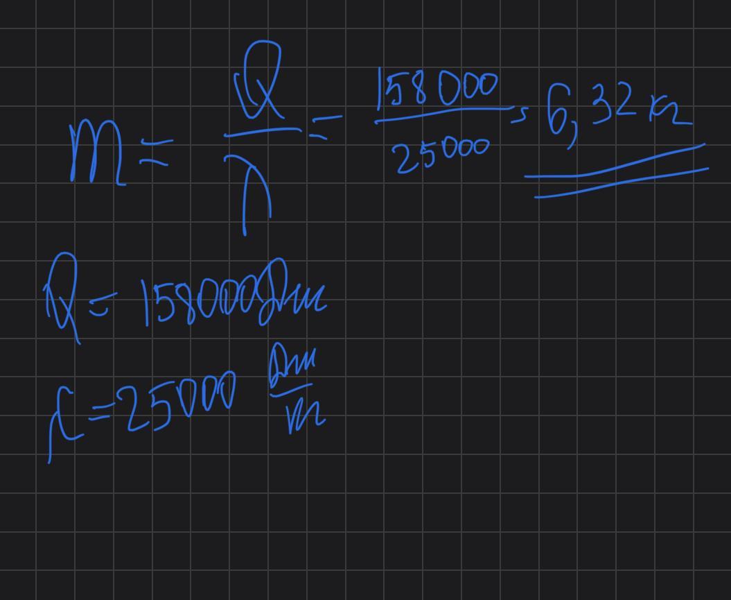 m = Q / λ = 1.58 *10^5 / 0.25 *10^5 = 6.32 кг
