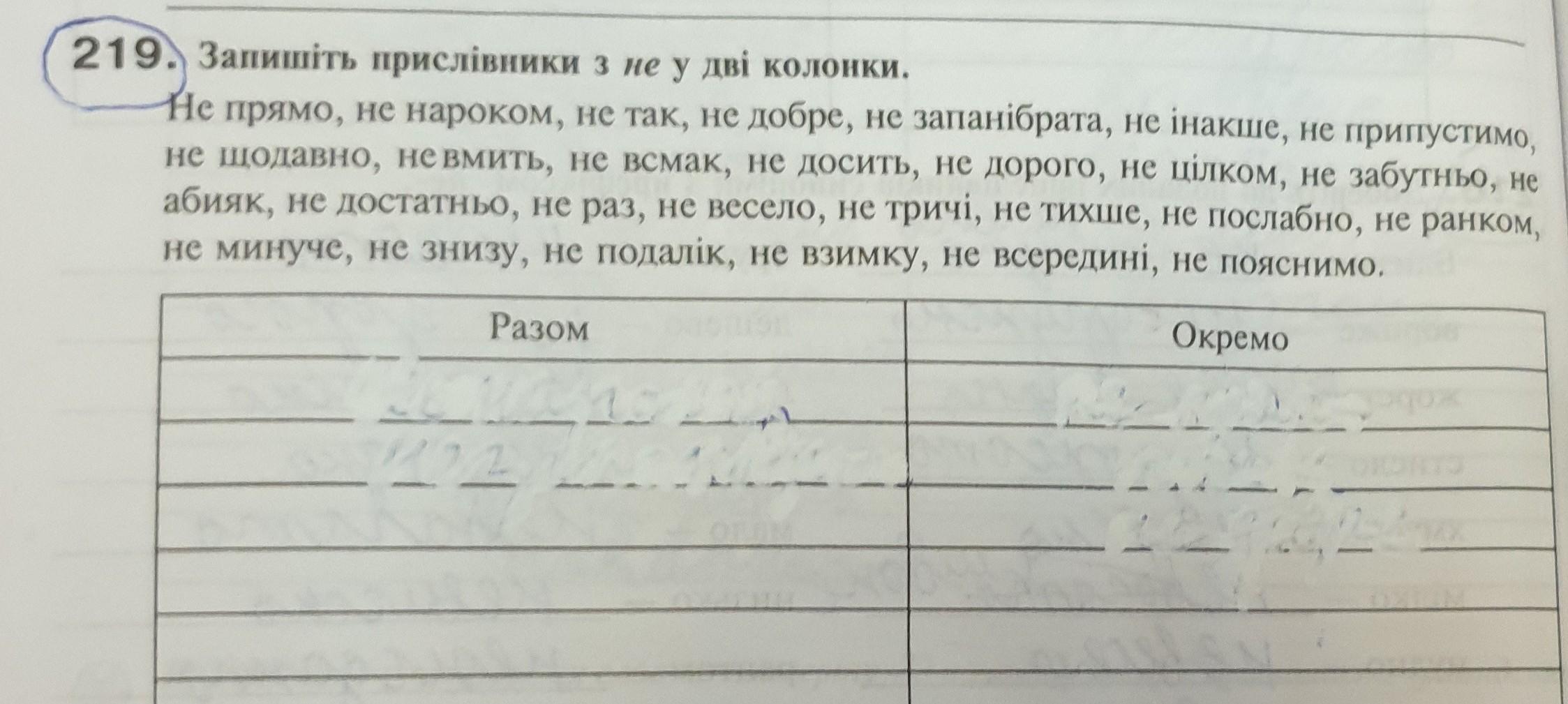 окремо: не прямо,не так,не добре,не запанібрата,не інакше,не вмить,не досить,не дорого,не цілком,не раз,не весело, не тричі, не тихше,не ранком,не знизу,не взимку,не всередині,не пояснимо