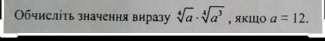 ∜a ·∜a³=a^(1/4 +3/4)=a^(4/4)=a¹=a=12