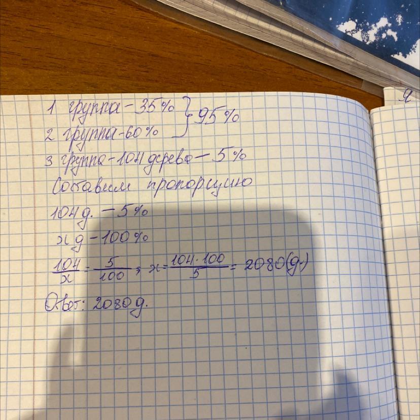 3 группы школьников посадили деревья вдоль дороги. первая группа посадила 35% всех имеющихся в деревьях 2-60% оставшихся деревьях а третья группа остальные 104 дерева сколько всего деревьев посадили?