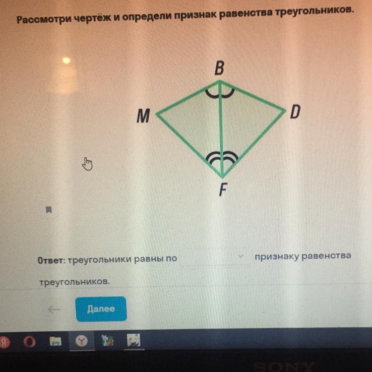 рассмотри чертёж и поредели признак равенства треугольников