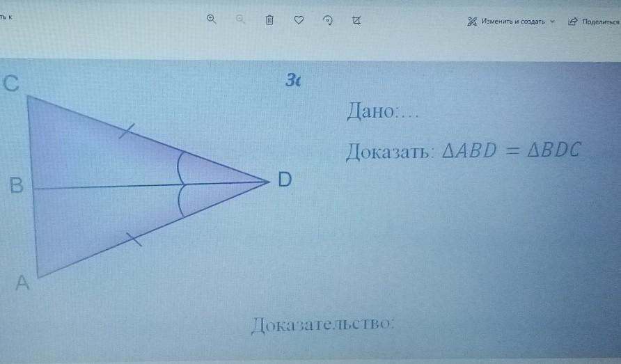 Так как CD=AD и ∠BDC=∠BDA по условию и