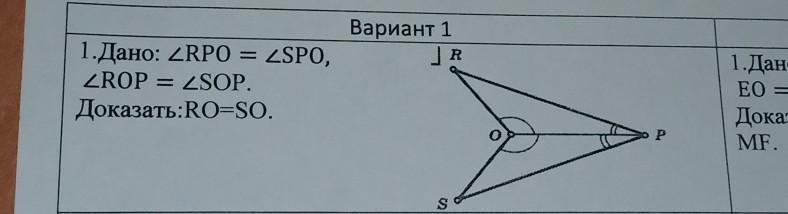 улг RPO=углSPO=>треуг RPO=треуг SPO(по 2 признаку равенства треугольников) =>RO=SO