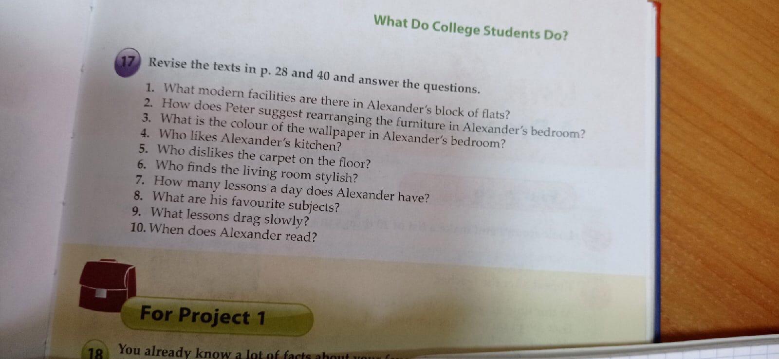 1) Alexander has modern facilities: central heating; not and cold water; electricity; gas; internet; two elevator; and a place where to take the gorbage down.