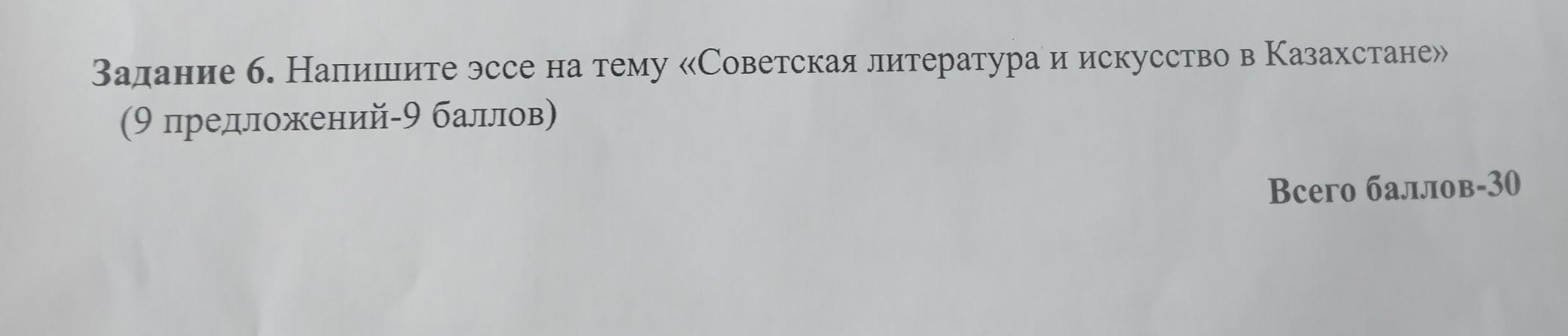 Напишите эссе на тему "Советская литература и искусство в Казахстане", 9 предлажений. Без спама.