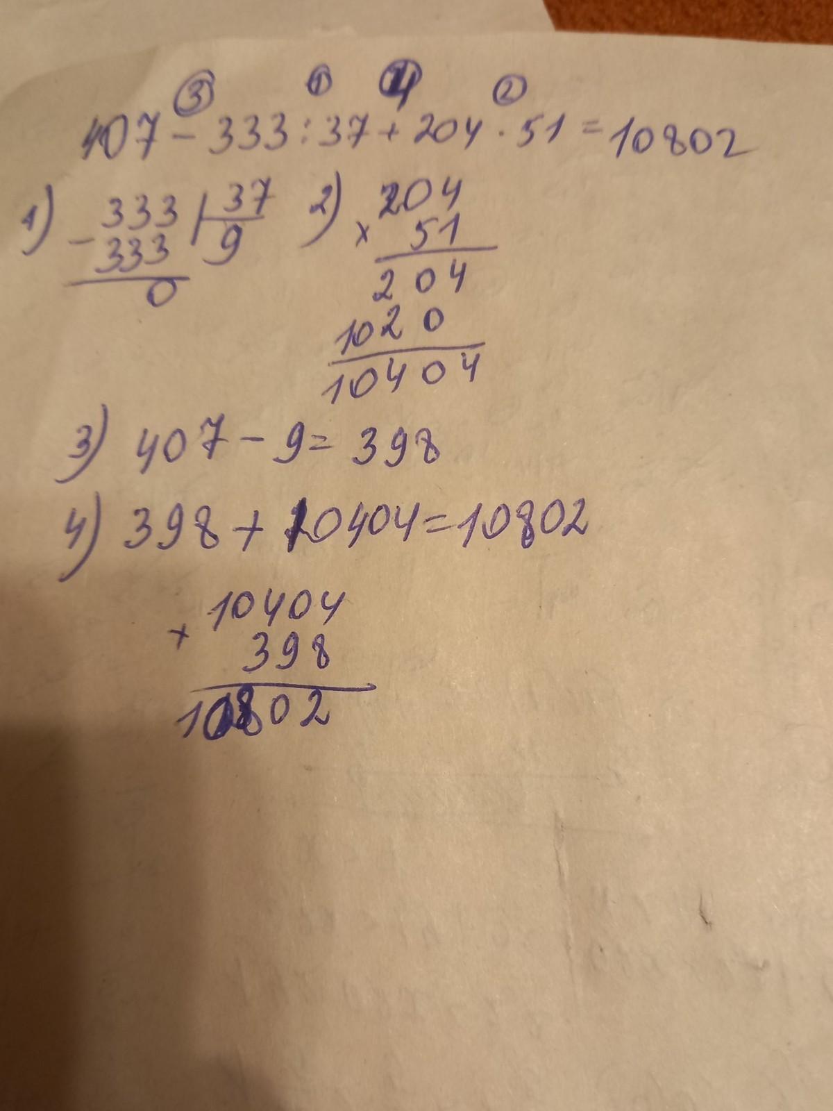 407 — 333 : 37 + 204 • 51 срочно пжпжпжпж