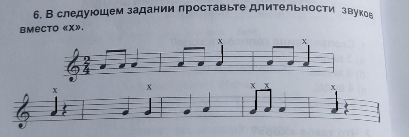 6. В следующем задании проставьте длительности звуков вместо x помогите пжжж