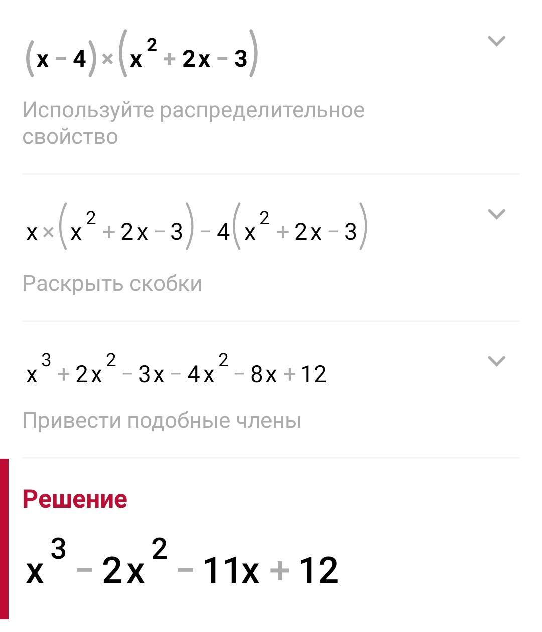 4) (x - 4)(x² + 2x – 3)= х³+2х²-3х-4х²-8х+12=х³-2х²-11х+12