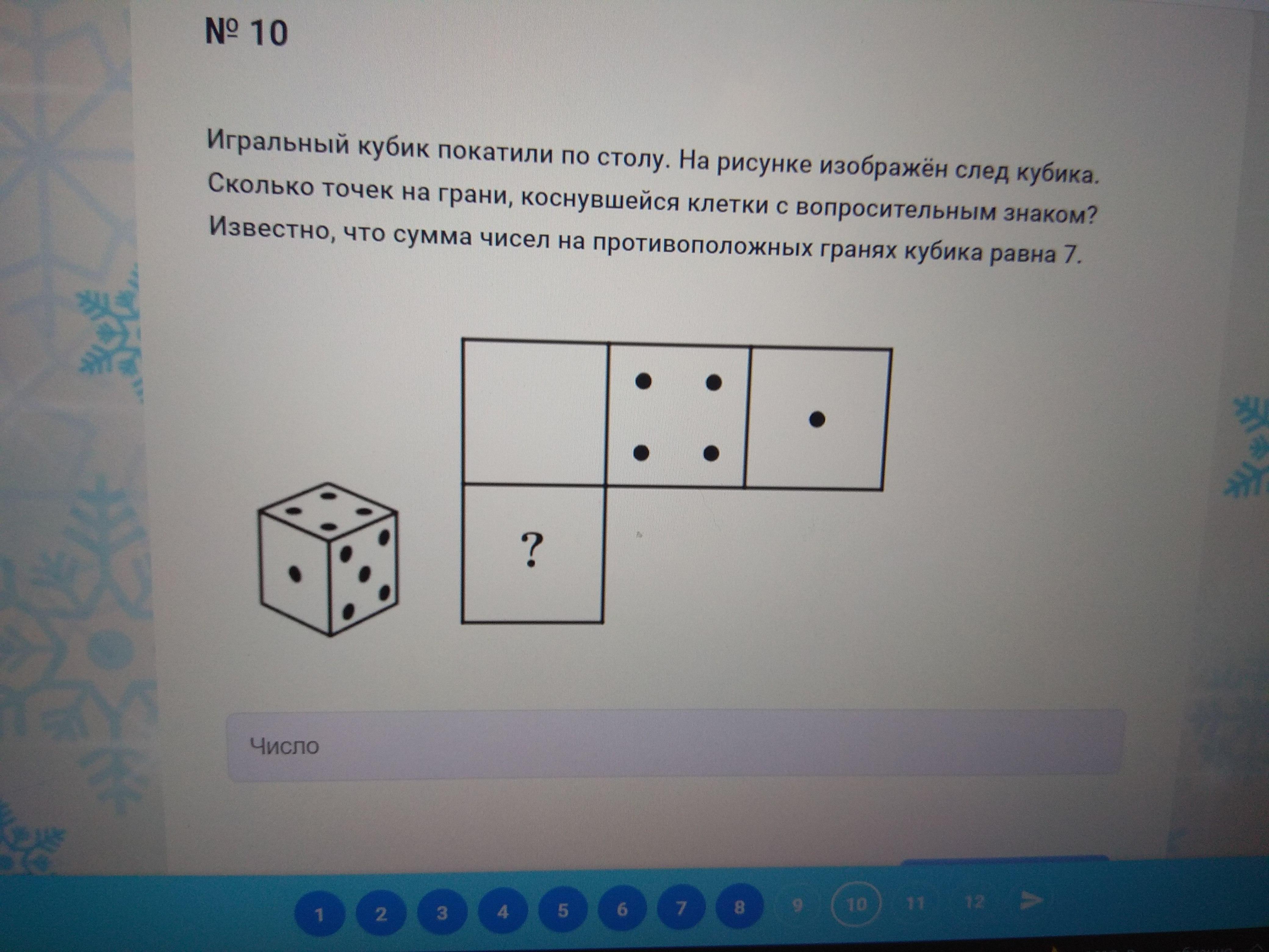 там 5 ,а там 2 ,а значить з тої сторони 6