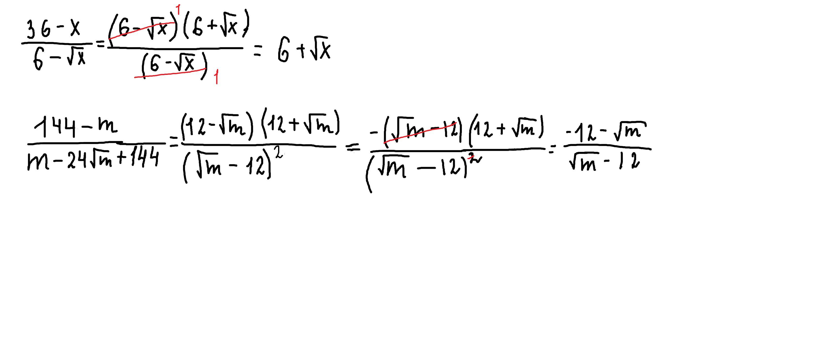 сократить дробь 1) 36-x/6-√x и 2) 144-m/m-24√m+144