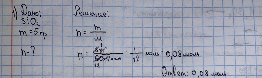1. Найдите (количество вещества) amount of substance в 5 гоксида кремния SiO2
