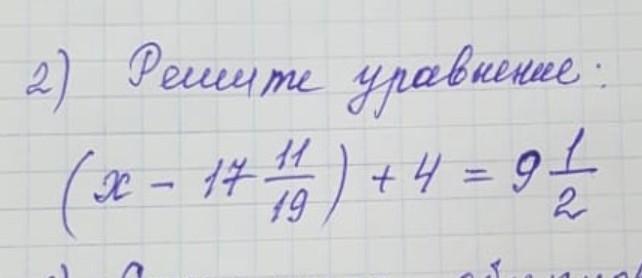 Решите уравнение (х- 17 11/19) +4=9 1/2